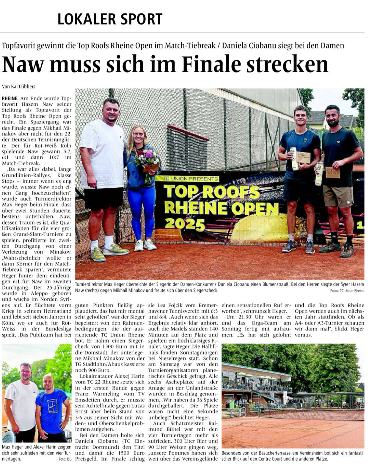 Die TOP ROOFS Rheine Open 2025 haben erneut gezeigt, wie lebendig und begeisternd der Tennissport in unserer Region ist – wir freuen uns schon jetzt auf die nächste Ausgabe!