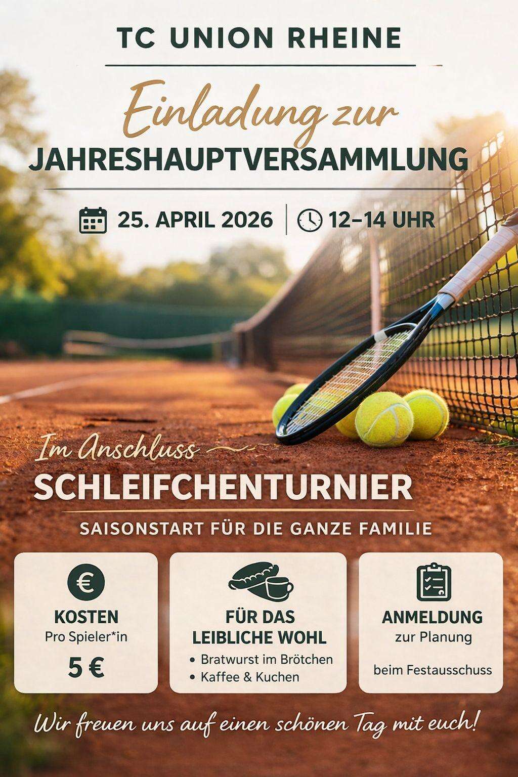Der TC Union Rheine lädt alle Mitglieder herzlich zur Jahreshauptversammlung 2026 ein.